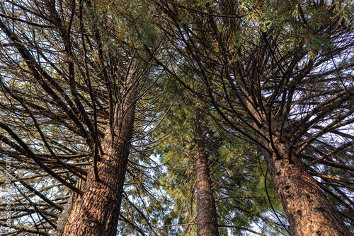 Fototapeta premium redwood trees with dense branches surround in circles in the park