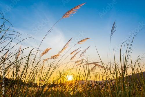© patpitchaya, Obraz premium Reed Field at Sunset