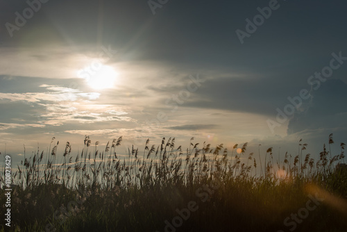 © ancamilushev, Obraz premium Reed silhouette at sunset