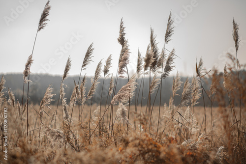 © Nastassia, Fototapeta premium reeds and pampas grass in autumn