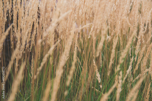 Obraz premium Reedweed spicy-flowered dwarf. Yellow dry plants.