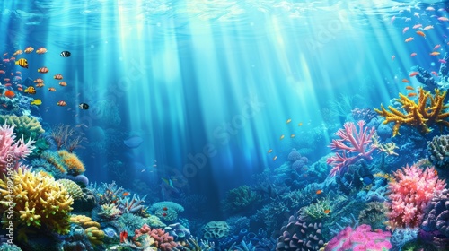 © Palung, Naklejka premium Reef awareness day background concept with copy space area for text. World Oceans Day and World Water Day. Beautiful sea background