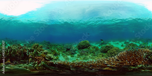 Obraz premium Reef Marine Underwater Scene. Tropical underwater sea fish. Philippines. Virtual Reality 360.
