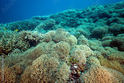 Fototapeta premium Reef scenic with Goniopra stony corals Raja Ampat Indonesia.