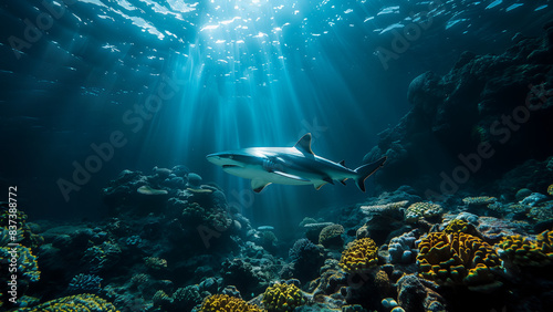 Fototapeta premium Reef Shark - Shark Swimming, Marine Animal, Sea Life, Aquatic, Underwater Photography, Aquatic Photography