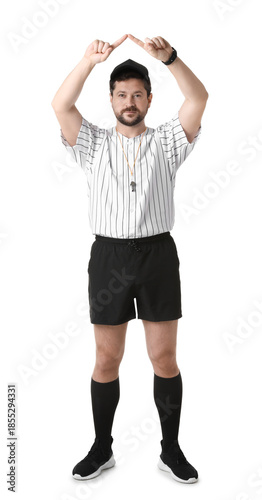 Fototapeta premium Referee showing VAR sign on white background