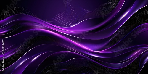 Fototapeta premium Refined abstract business background. Deep purple, cascading waveforms flow smoothly with glowing metallic accents. Elegant and professional.