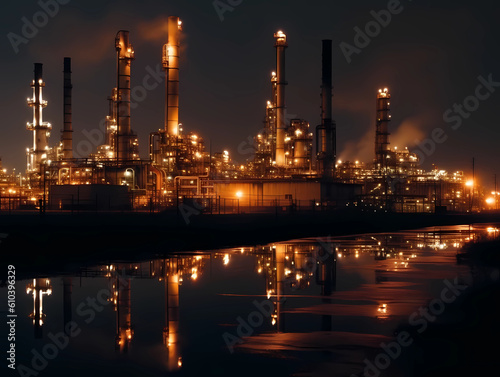 © Budairomi, Fototapeta premium Refinery industry engineer are working and discussing at front oil and gas industrial factory,Oil refinery plant for industry