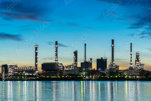 Fototapeta premium refinery oil petroleum production factory with river reflecting surface...