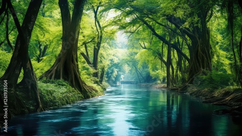 © vectorwin, Fototapeta premium reflection blue and green water color