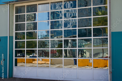 Obraz premium reflection in glass panes of roll-up garage door