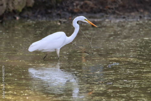 © Catalin, Fototapeta premium Reflection in water of an egret