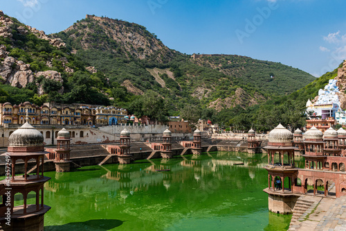 © mithun, Fototapeta premium Reflection in water of historical buildings commonly known as Chhatris or cenotaphs. This is very pupilar traditional architecture among Rajastan old royal families to respect their loved ones.