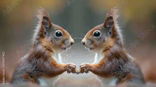 © Berkah, Obraz premium Reflection of a red squirrel.