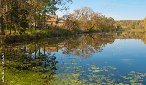 Fototapeta premium Reflection of autumn forest in the water of Lake Forest