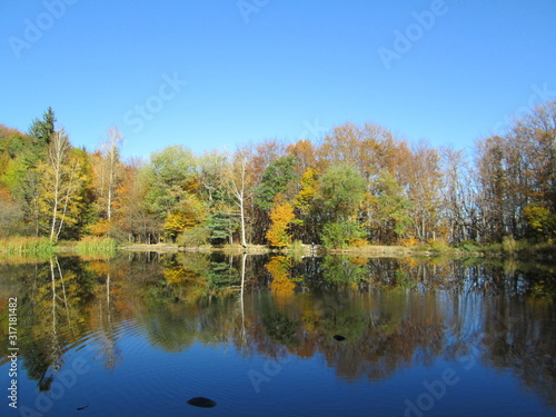 © Dimitar, Fototapeta premium reflection of autumn trees in the lake