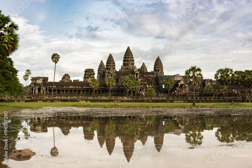 Fototapeta premium Reflection of beautiful Angkor Wat complex in Cambodia
