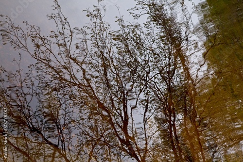 Obraz premium Reflection of branches on water surface.
