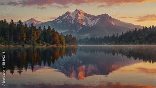 © Tiny Pixels , Fototapeta premium Reflection of Mountain on Calm Lake – 4K Ultra HD Nature Wallpaper8K Dreamlike Mountain Scene with Mirror Water – Perfect Desktop BackgroundHigh-Resolution Mountain Landscape with Lake – 4K Nature