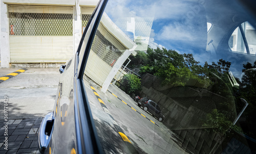 © shoaib, Obraz premium Reflection of surrounding on a window