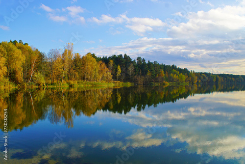 © Olena Savonova, Fototapeta premium reflection of the forest in the water