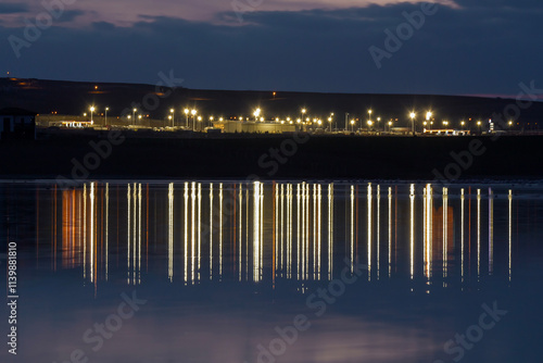 © mehmetali, Fototapeta premium Reflection of the night light show on the water.