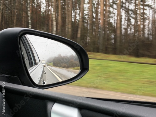 Obraz premium reflection of the road in the car mirror