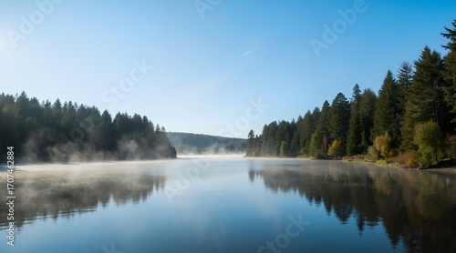 © 婕 罗, Fototapeta premium reflection of trees in lake