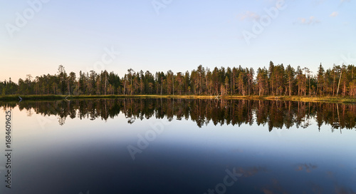© PekkaLinna, Fototapeta premium reflection of trees in water