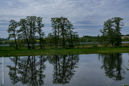 Fototapeta premium Reflection of trees in water in Cracow, Malopolskie, Poland.