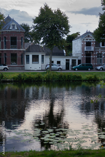© zivko.trikic, Obraz premium Reflection of typical Dutch houses in canal water