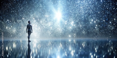 © Sayfar, Obraz premium reflection, shiny, pattern, reflective, silverish, abstract, liquid, shiny surface, shiny backdrop, texture, Silver mercury looking background with shiny reflection silhouette