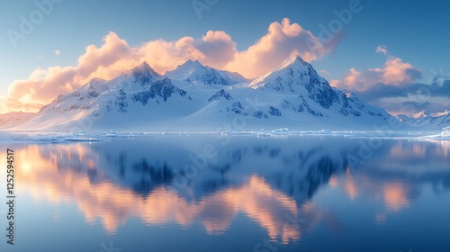 Fototapeta premium reflection sunset snowy scenic mountains composition high resolution hd picture