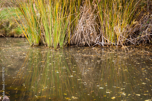 © pintxoman, Fototapeta premium Reflections in the river, fallen leaves in autumn. Scene from Avila, Castilla y Leon, Spain