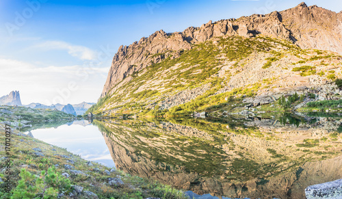 © Maksim, Naklejka premium Reflections of rocks and mountains in the lake