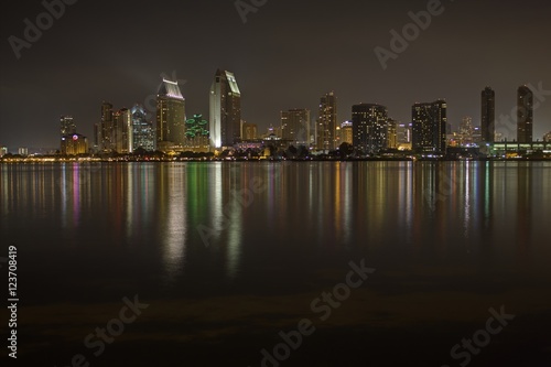 Fototapeta premium Reflections of the skyline of San Diego in the water.