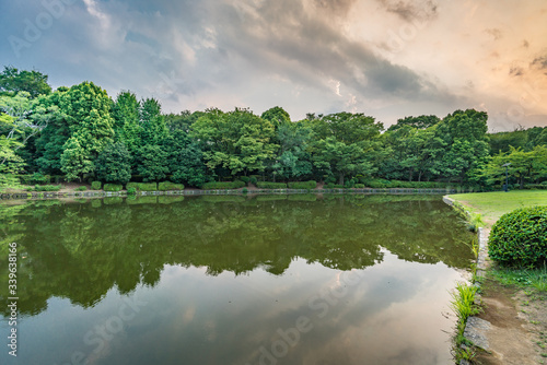 Obraz premium Reflections on pond at Kitanomaru Park, Tokyo, Japan