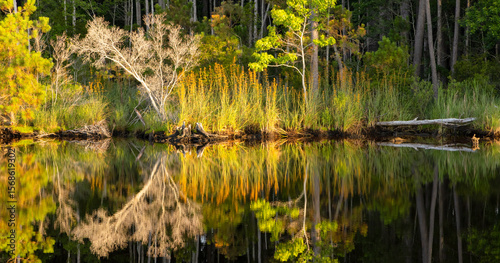 © Linda, Fototapeta premium Reflections on the still water of the Alligator River-Pungo River Canal