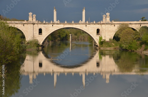 Fototapeta premium Reflections on the Tiber river, Rome, Italy. Flaminio bridge