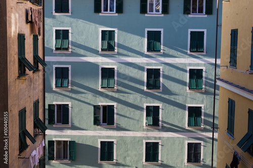 © aledesun, Fototapeta premium reflections on windows in a sunny day,hanging clothes outdoors