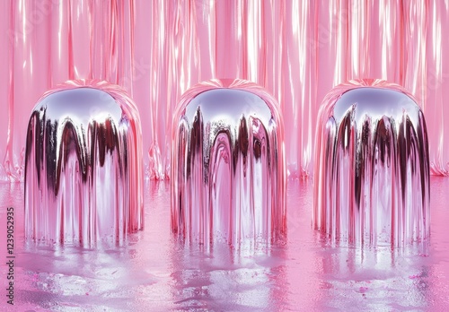 Obraz premium Reflective Metallic Forms with Pink Background and Sheen Effect