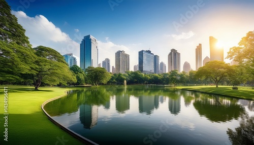 © Outside Studio, Obraz premium Reflective Park City Oasis