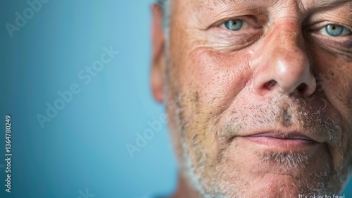 © Anna, Obraz premium Reflective portrait of mature man with thoughtful expression against blue background