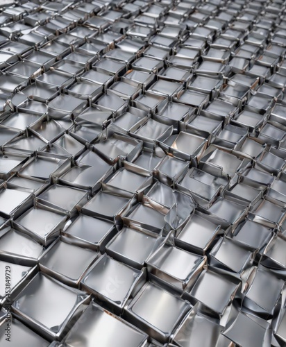 © Kim, Naklejka premium Reflective silver steel, geometric grid pattern , pattern background, silver background