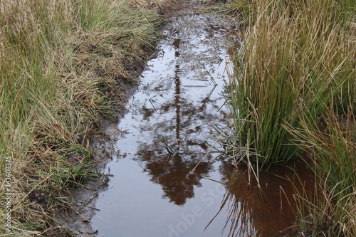 © Sarah, Fototapeta premium Reflektion eines Baumes in einer Wasserpfütze, Februar 2020, Bad Endorf, Deutschland