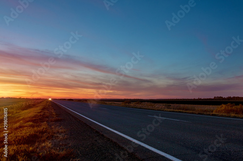 © EvgenyPyatkov, Fototapeta premium reflektory samochodowe na autostradzie w nocy