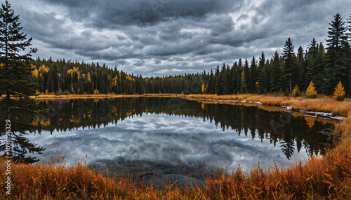 Fototapeta premium Reflets d'automne sur le lac tranquille