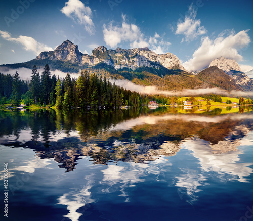 © Andrew Mayovskyy, Fototapeta premium Reflexion of blue sky in the pure water of Hintersee lake.