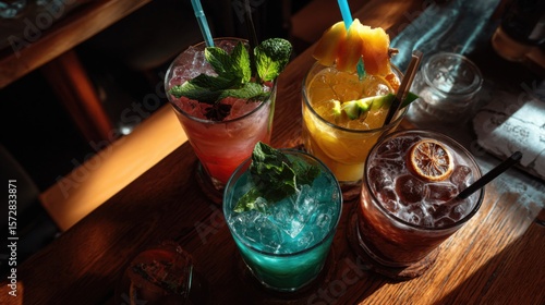 © sirisakboakaew, Fototapeta premium Refreshing cocktail mixology event bar lounge beverage photography cozy atmosphere close-up view summer vibes