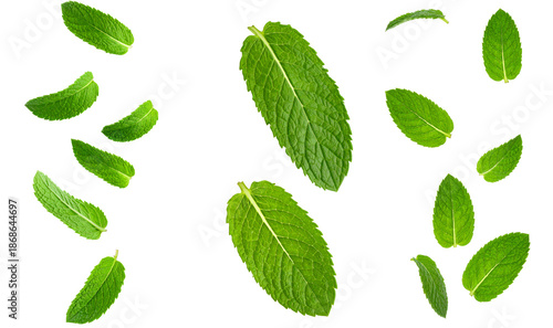 Fototapeta premium Refreshing green peppermint leaves falling, displaying freshness and natural...